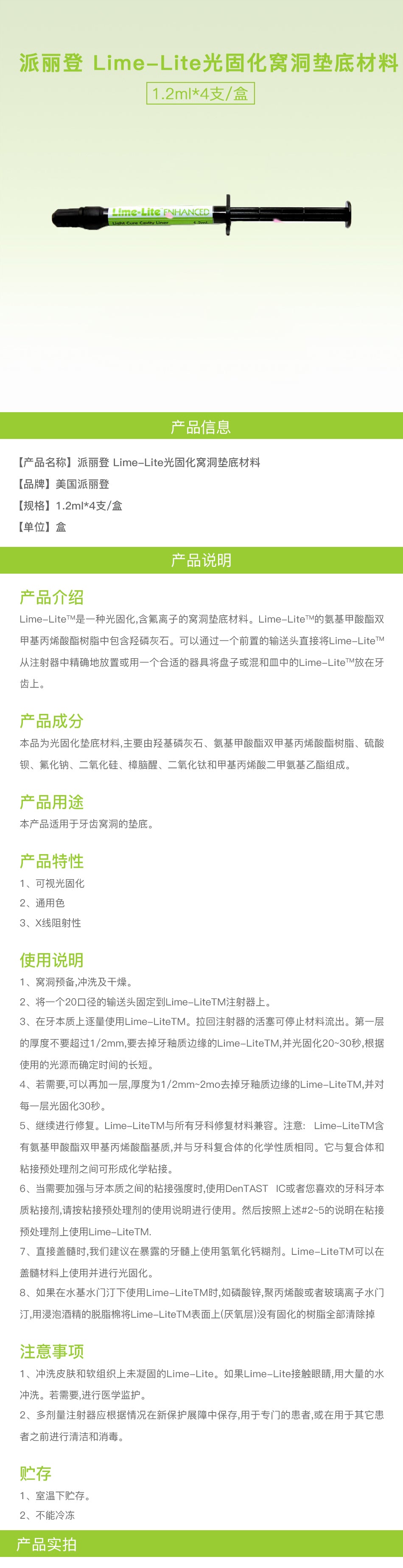 派丽登/PULPDENT Lime-Lite ENHANCED 光固化窝洞垫底材料 1.2ml*4支/盒