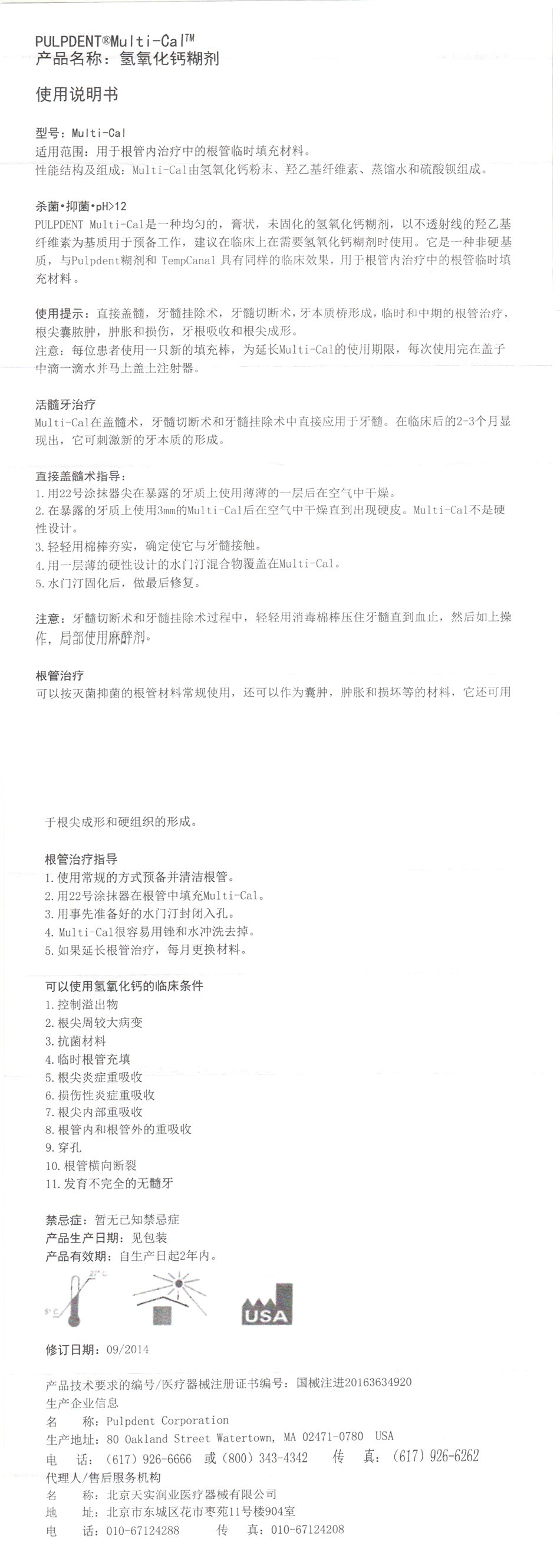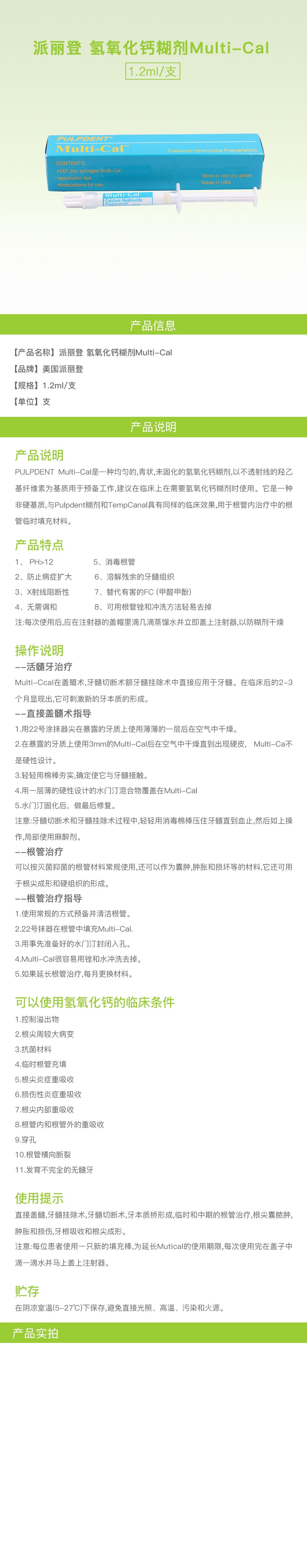 PULPDENT Multi-Cal Calcium Hydroxide Paste 1.2ml/tube