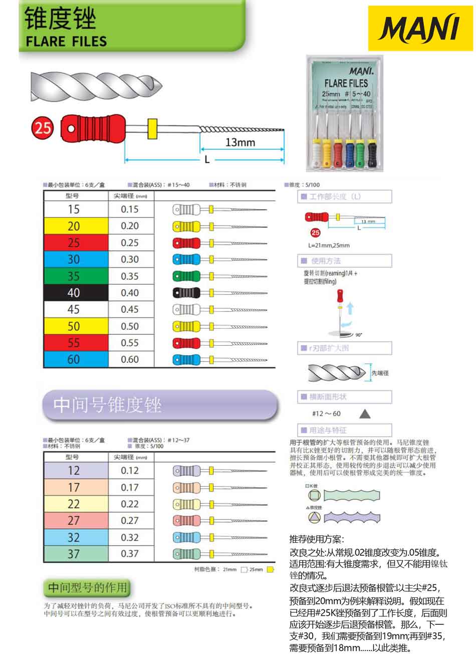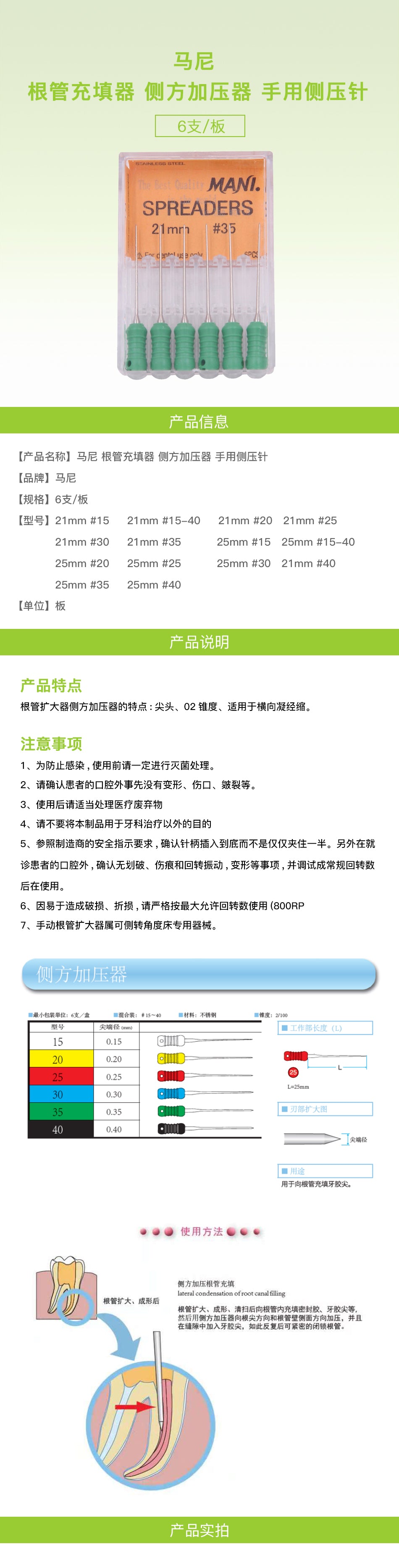 MANI root canal filling instruments/lateral condensers 02 taper 6 pieces/box 21mm #15